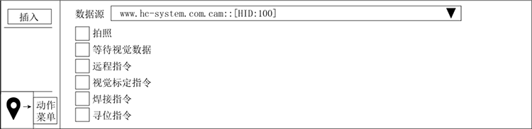 2、远程指令:选择如下图所示数据源,插入指令。运行时,系统将处于等待状态,直到接收到远程指令,执行完一条远程指令后程序将继续执行。否则将不断处于等待状态下。