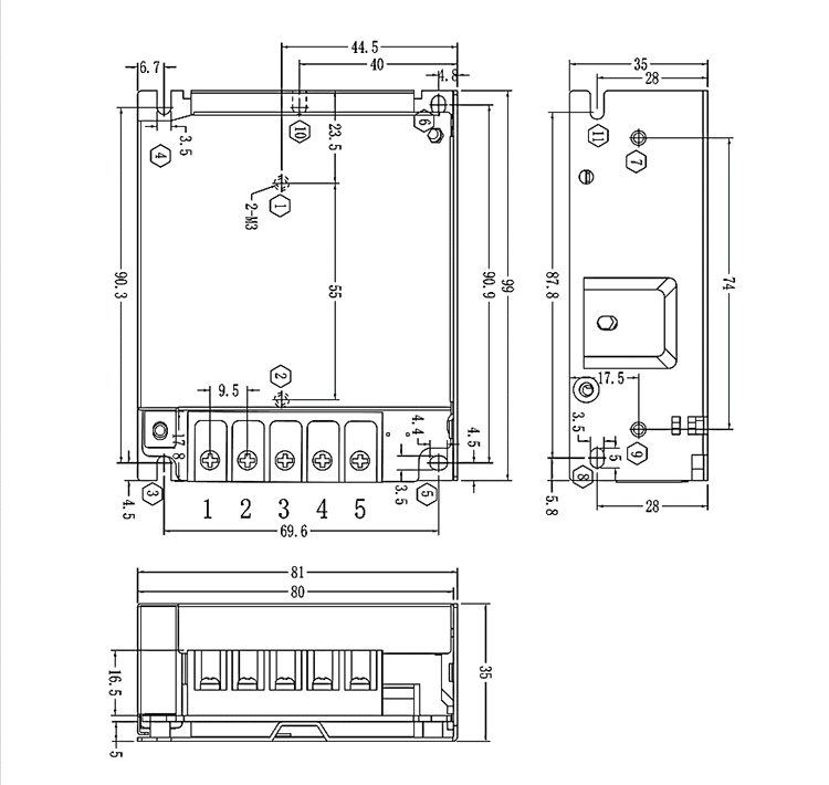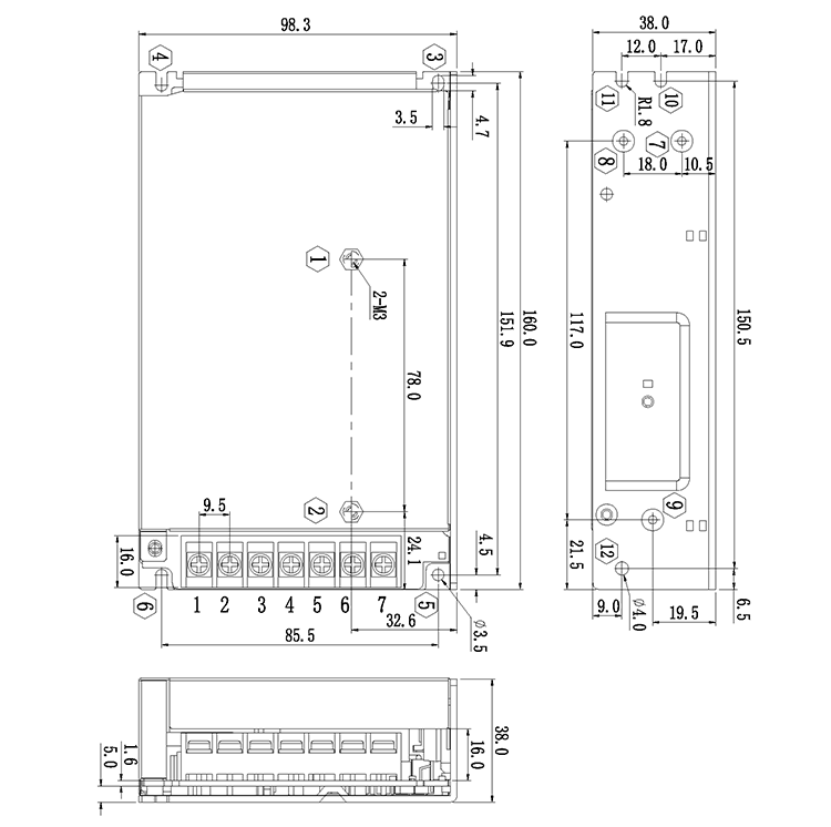 qy球友会(中国)系列机械手控制系统开关电源包含单路/双路,50W/100W两款开关电源;制动电阻有120W/200W/300W选择,各功率段产品尺寸及安装方式如下: