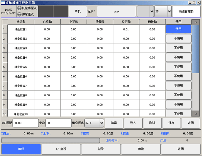 冲压机械手控制系统为qy球友会(中国)系列摆臂旋转式冲压系列机械手控制系统,系统在运行中堆叠的教导如下: